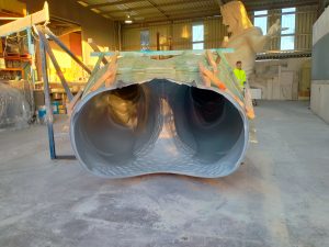 “We take the design, make a miniature in clay, 1:10 ratio, and then use a 3D scanner to make sure it fits before 5 axis cutting the pieces in foam and then fibreglassing casting it.”