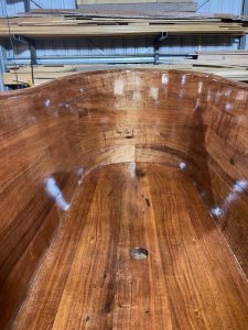 “Once completed the entire bath will be resin coated in WEST SYSTEM epoxy and then varnished with Epifanes PP Extra a favourite of professional boatbuilders which delivers a quick drying, high-gloss build up on all types of wood. and top coated with Epifanes Clear Satin Finish.”