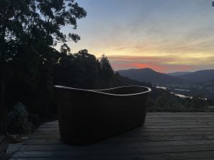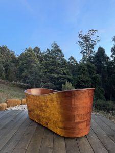 “Dan made it clear there was no other option but to park my van on up on his block and make use of the water tank and gas heated shower. Somewhere among scouting out timber on his block that was milled for framing, lintels and beams, we dreamed of a wooden bath would fit right in and the project grew from there. It’s become a way of me saying Thank You to him for welcoming me in my first few months here in Tassie.”