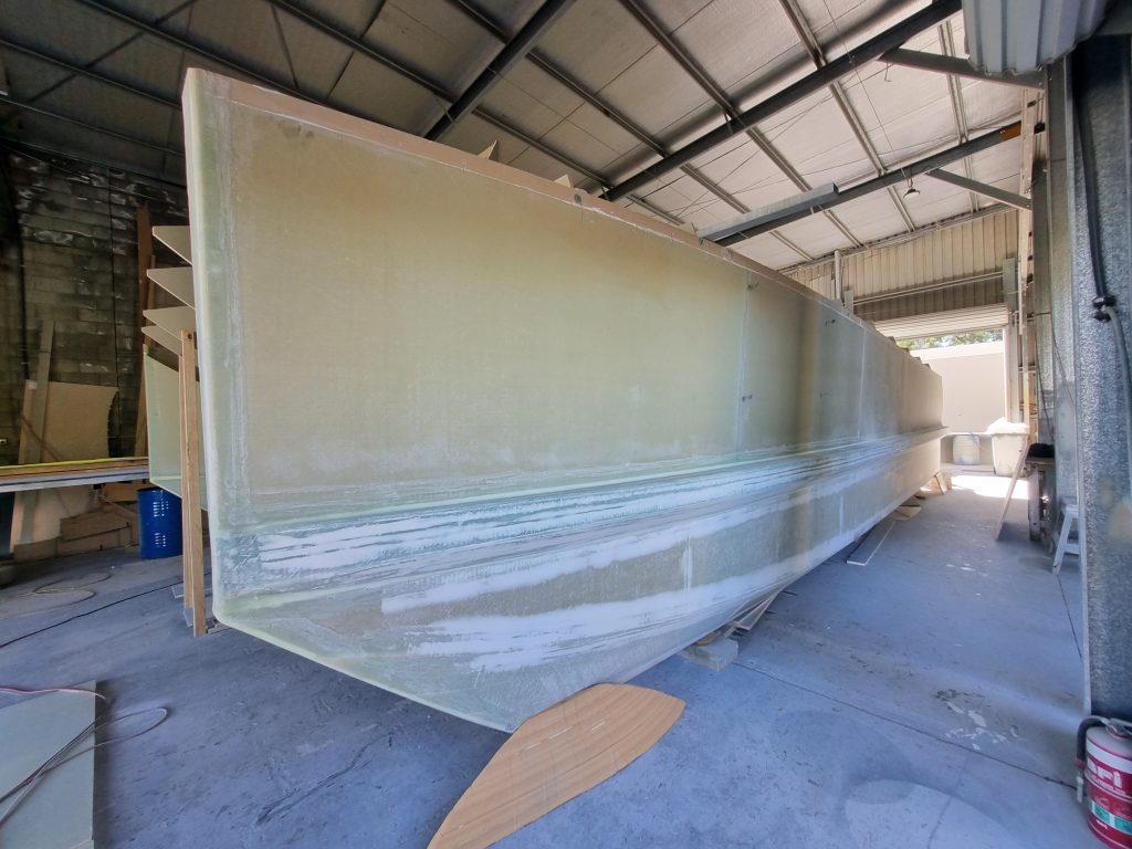 10 weeks into the build, Julian Griffiths and his team at Noosa Marine are bringing to life the, as yet-unnamed vessel, using the DuFLEX Composite Panel Building System, with WEST SYSTEM epoxy and powder modifiers and KINETIX Laminating epoxy resins used throughout for bonding filleting and additional laminating as required.
