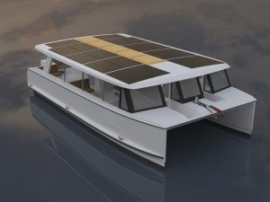 “We are hoping that combining the two petrol low-emission outboards with the electric will enable us to fully charge the electric outboard without having to plug into shore power. There will also be solar panels on the roof to assist with the charging of electric outboard batteries.”