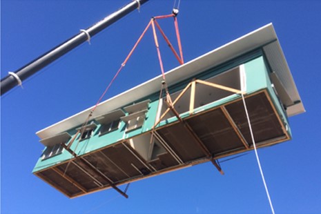 The whole house weighs less than nine tonnes and is so stiff it only needed two slings for the lift.