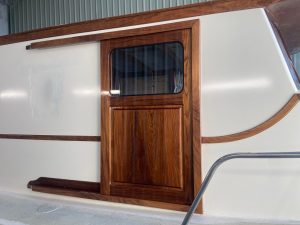 They also used the Epifanes marine coatings products on all exterior teak, timber work and trim, including the Epifanes PP Varnish Extra for rapid build-up coats to fill the grain, followed by four coats of Epifanes Polyurethane Clear Gloss for durability.“The majority of timber work on the interior is Tasmanian Oak, finished with natural non-VOC coatings. This is complemented by Tasmanian Oak Fiddleback trim throughout the fitout, which is coated with a few coats of Epifanes PP Varnish Extra to fill the grain, then finished with Epifanes Polyurethane Clear Satin for a premium feel.”